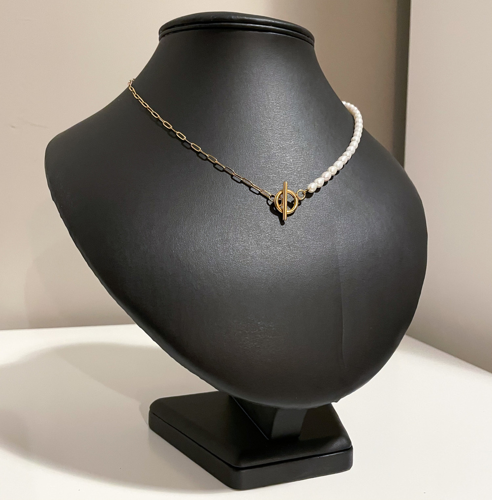 Et lekkert halskjede fra ELMA. Lengde 41,5 cm. Materiale er bestående av perler og rustfritt stål.