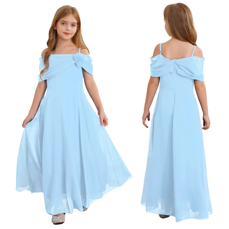 Lang festkjole til jente og ungdom uten armer og off-sholder. Veldig fin til party, skoleball, bryllup osv. Eks 12 år - 152 cm høyde