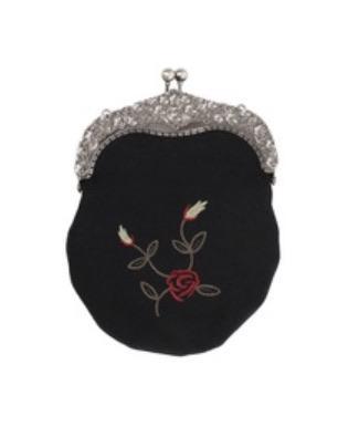 Vesker i mørk blå som passer til Maxemilia festdrakt i ull med nydelig broderier. Norsk design. Anbefaler å feste vesken på belte med sikkerhetsnål, da lenken ikke tåler mye vekt.