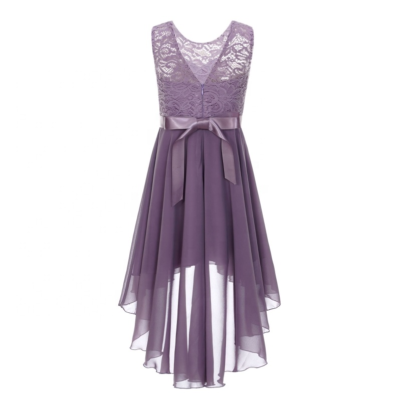 Vakker kjole til stor jente. Lang bak og kortere foran. Fantastisk myk og pen blonde overdel. Passer til anledninger som ball, bryllup, konfirmasjon, dåp eller når du skal være fin på en bursdag. Populær som brudepikekjole enten i hvit eller farger som matcher brudens bukett. Normal i størrelse. Kjøp 140 cm til 140 cm høye jenter. Knytes inn i livet med silkebånd.