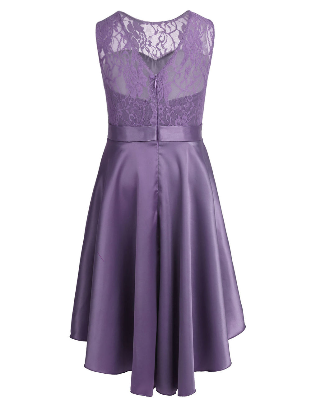 Vakker kjole til stor jente. Medium lengde. Pen blonde overdel og "silke look" underdel. Passer til anledninger som ball, bryllup, konfirmasjon, dåp eller når du skal være fin på en bursdag. 100% polyester. Vaskes skånsomt ved 30 grader.