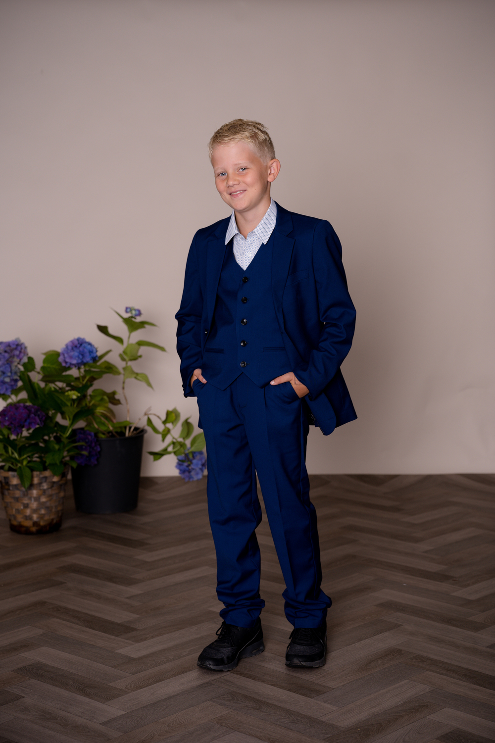 Fin blå dress fra 4-17 år. Slank passform. God ben lengte. Skjorten selges separat. Se Salto skjorter.