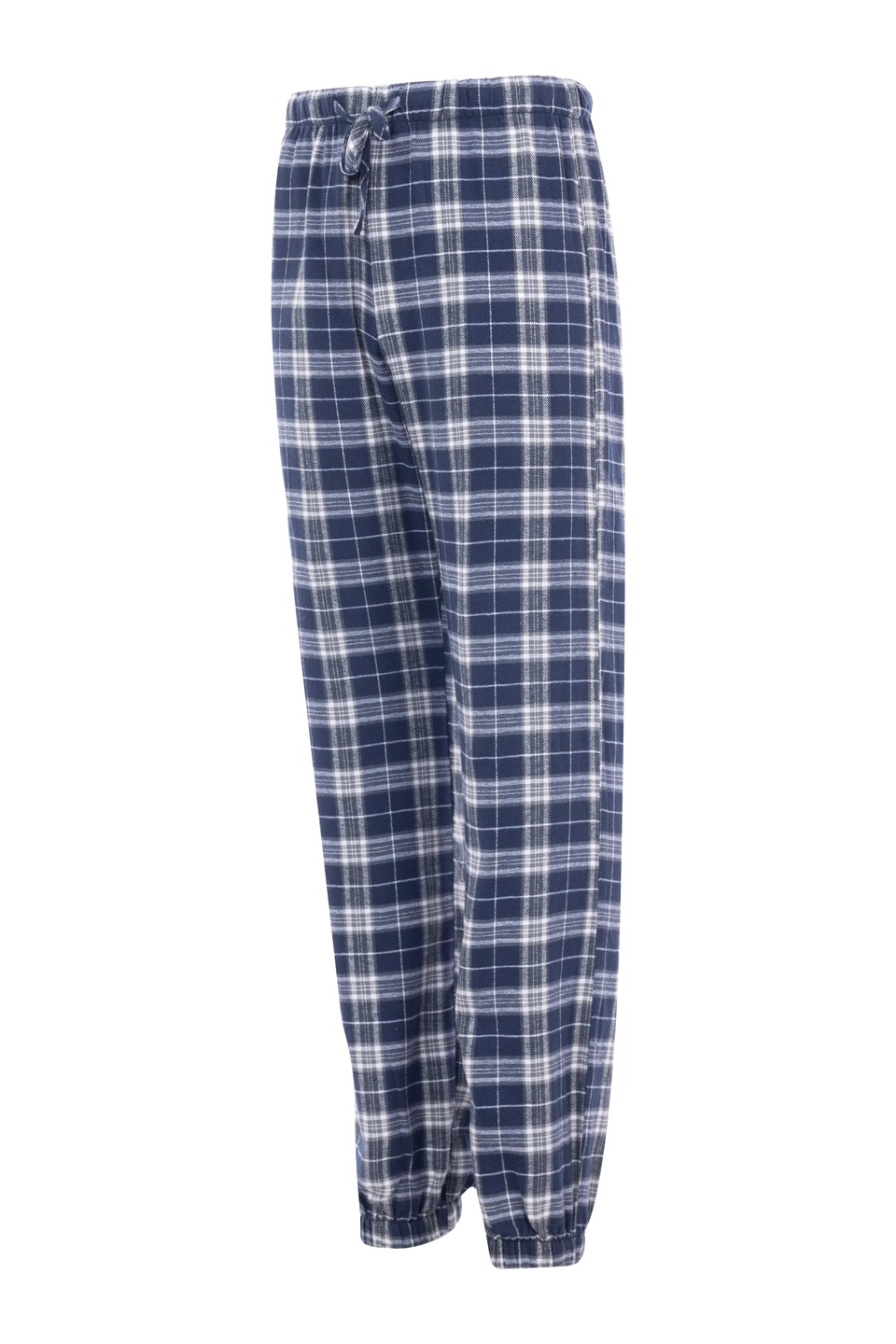 Klassisk rutet pysjbukse i myk børstet bomullsflanell. Innstamming i livet og strikk i bena. Buksen er varm og puster, så du kan holde deg varm under kaldere netter. Passer også perfekt som kosebukse hjemme eller på hytta. Materialet er i 100% bomull.
