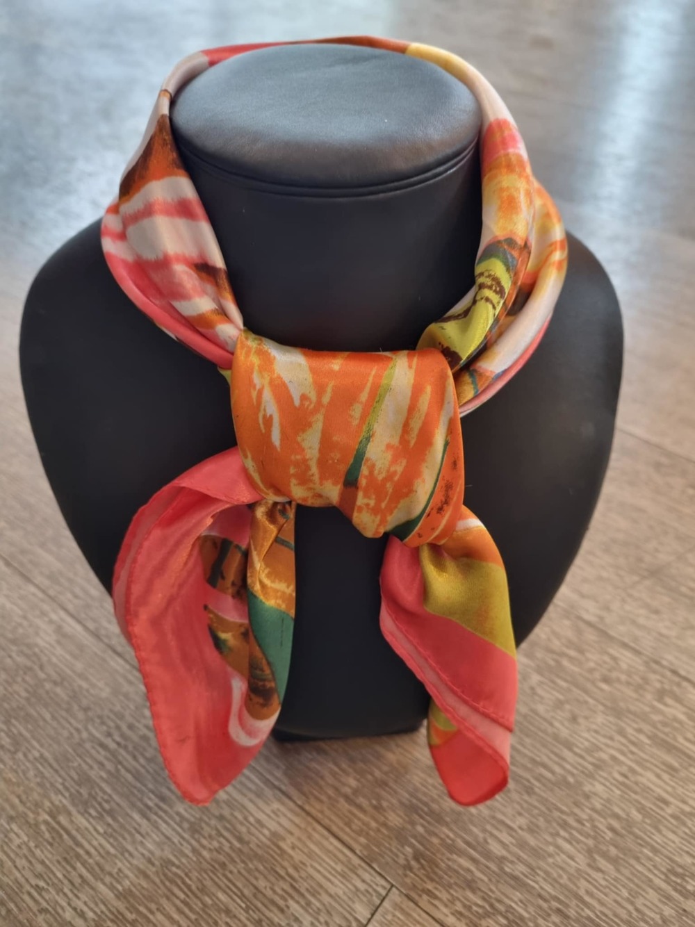 Silkeskjerf i mange farger og mønster. Fint tilbehør til både barne og dame festdrakt og bunad. Kjempefin til hverdag og fest. 60x60 cm Polyester/Satin.