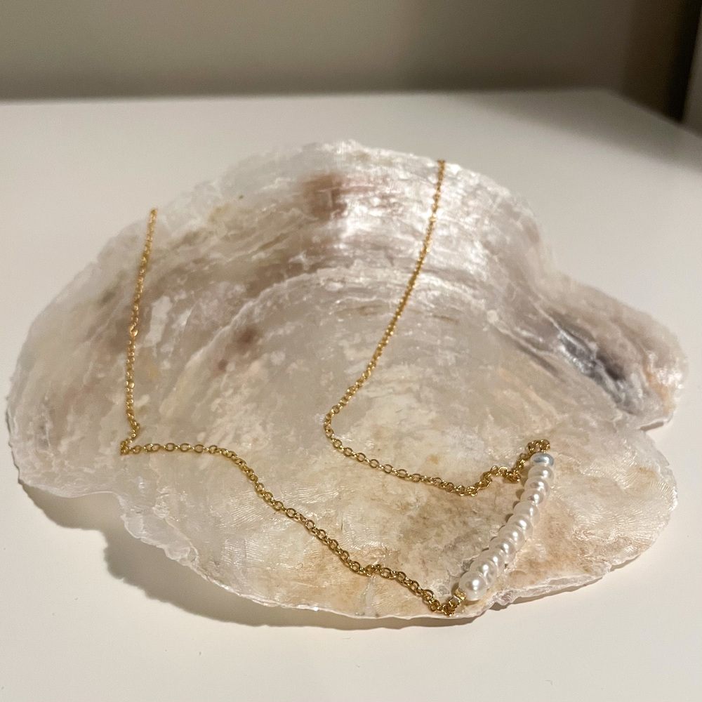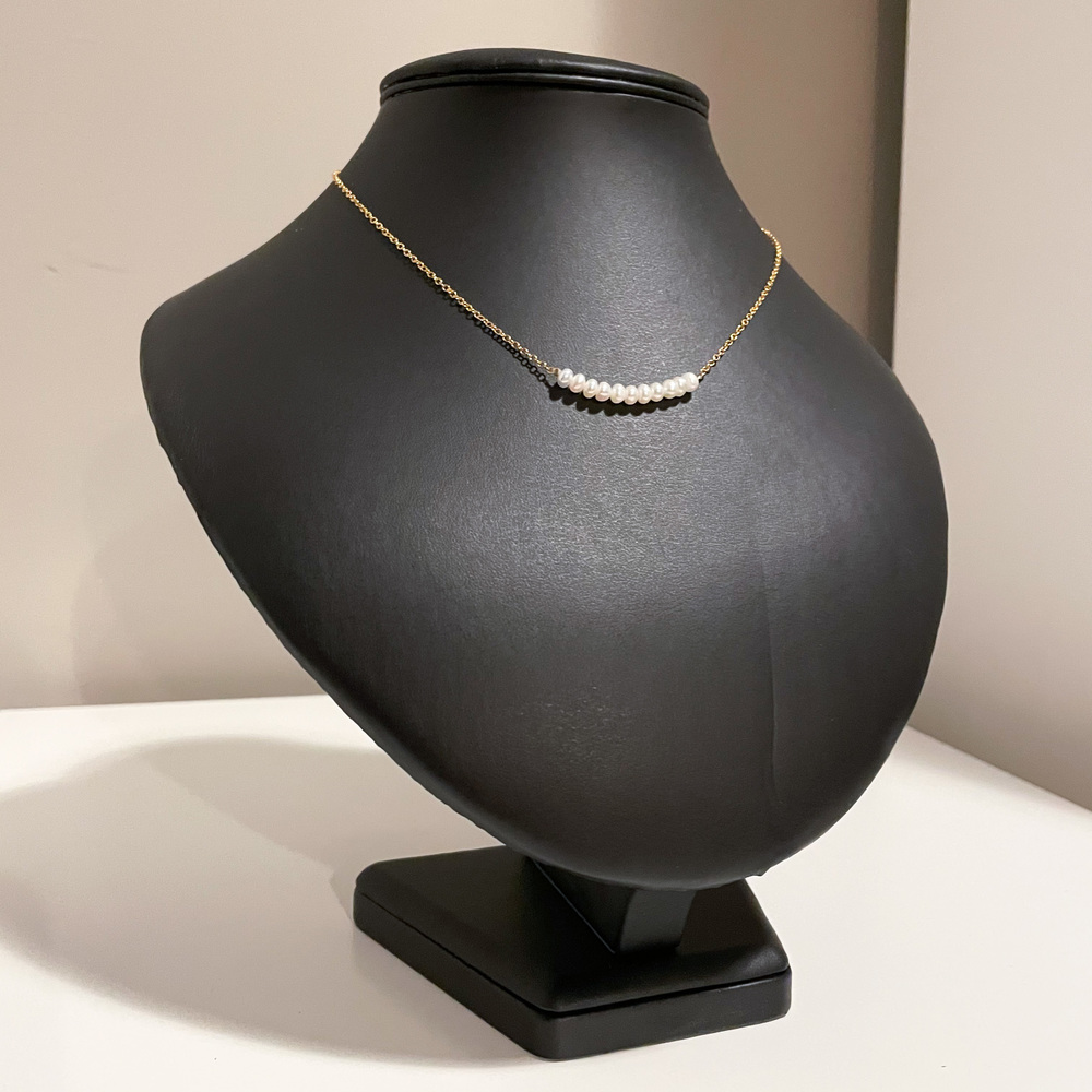 Et klassisk perlesmykke fra ELMA. Halskjedet er 40 cm, med mulighet til å forlenge med 5 cm. Materiale er bestående av perler og messing.