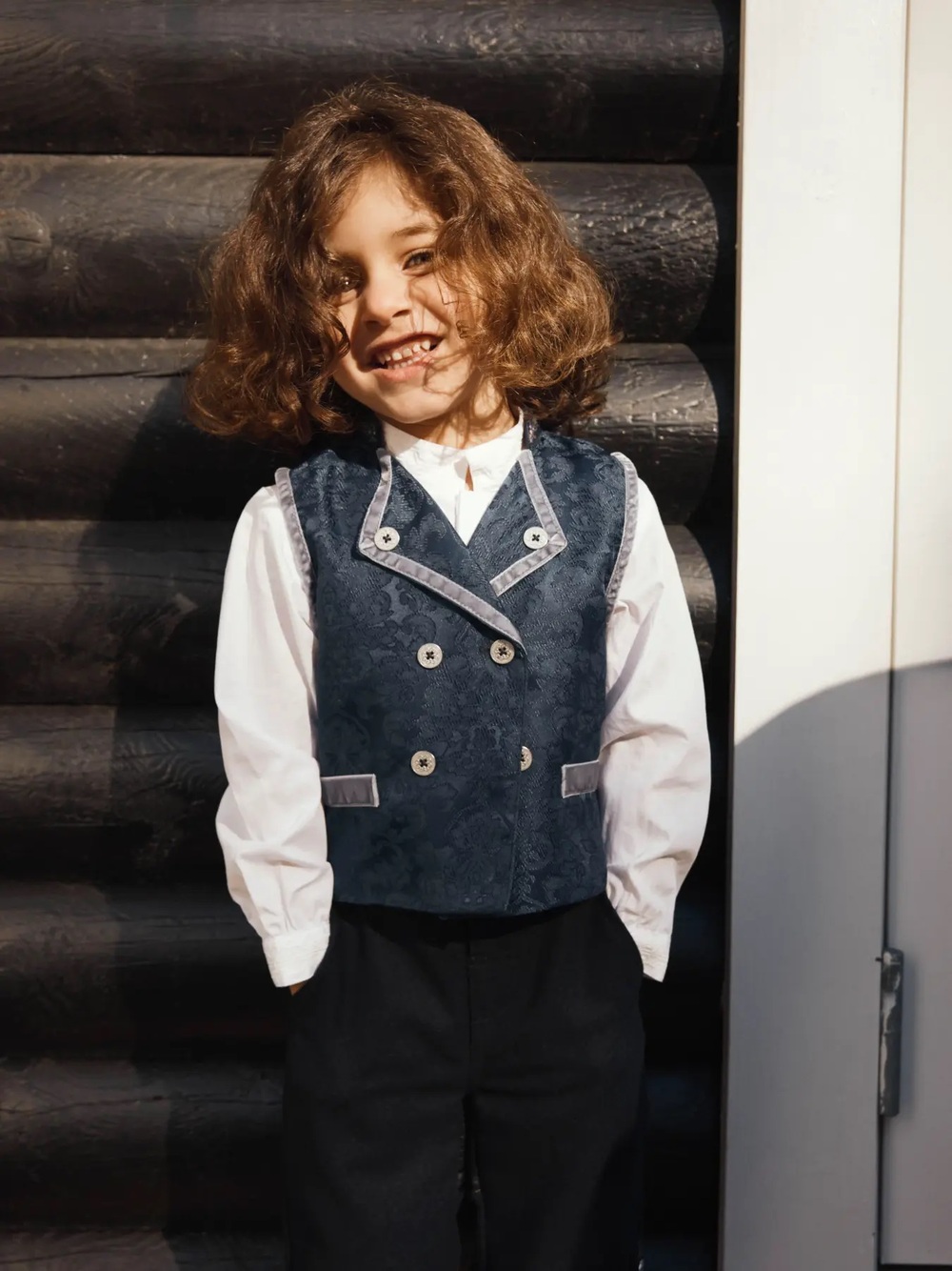 Festdrakter til gutt med skjorte i bomull. Nikkers har tøffe strikk seler og "skinnlapp" bak. Lett å regulere størrelse. Rund opp til nærmeste høyde.