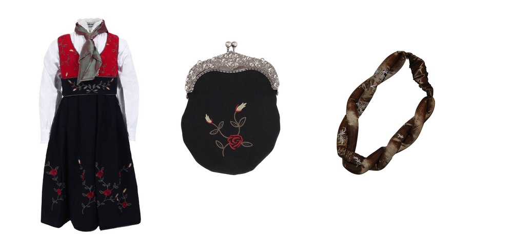 Maxemilia festdrakt i ull med nydelig broderier. Norsk design.. Skjorte og skjerf er inkludert. I denne pakken får du også veske og hårbånd. Festdrakten leveres med et legg, som enkelt kan tas opp. Dette forlenger brukstiden til ca 3 år. Drakten er liten i størrelse. Anbefaler å gå opp en størrelse. Blir skjorten lang på armen, anbefales å brette opp før du knepper.