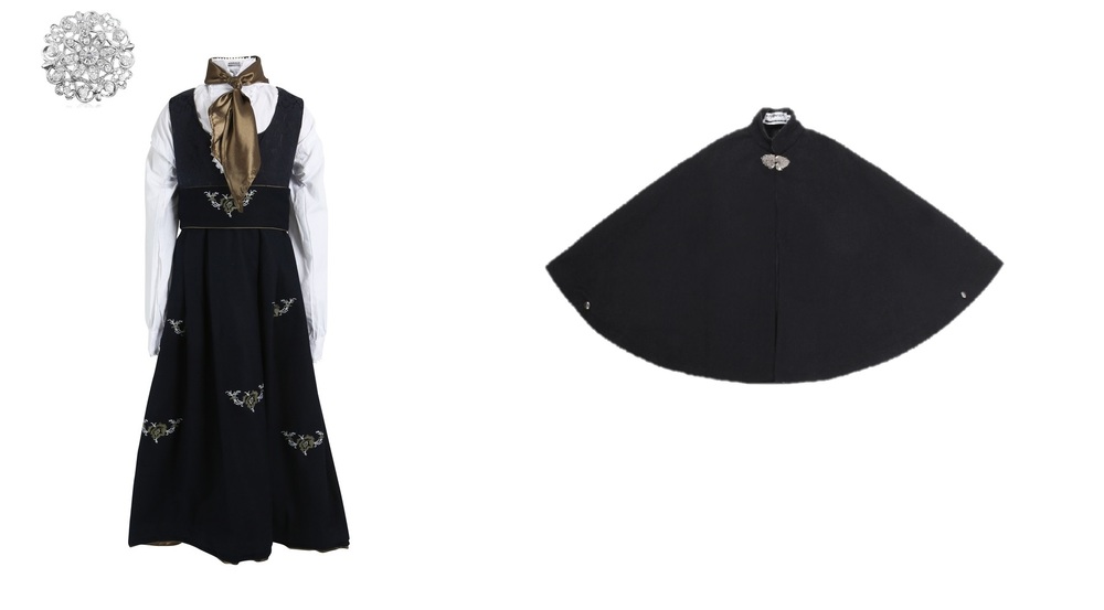 Maxemilia festdrakt, Norsk design i ull med brodrier. Skjorte og skjerf er inkludert. Festdrakten leveres med et legg, som enkelt kan tas opp. Dette forlenger brukstiden til ca 3 år.