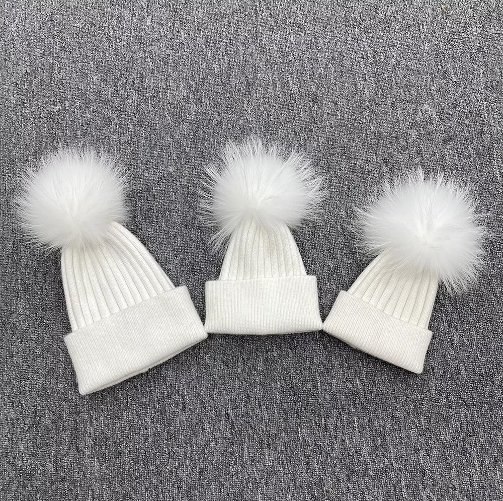 Søt baby lue i ull med avtagbar pels dusk. Ribbet og fleksibel i størrelse. Passer lenge. Finnes i 3 størrelser. Vaskes på ullprogram. Klør ikke.