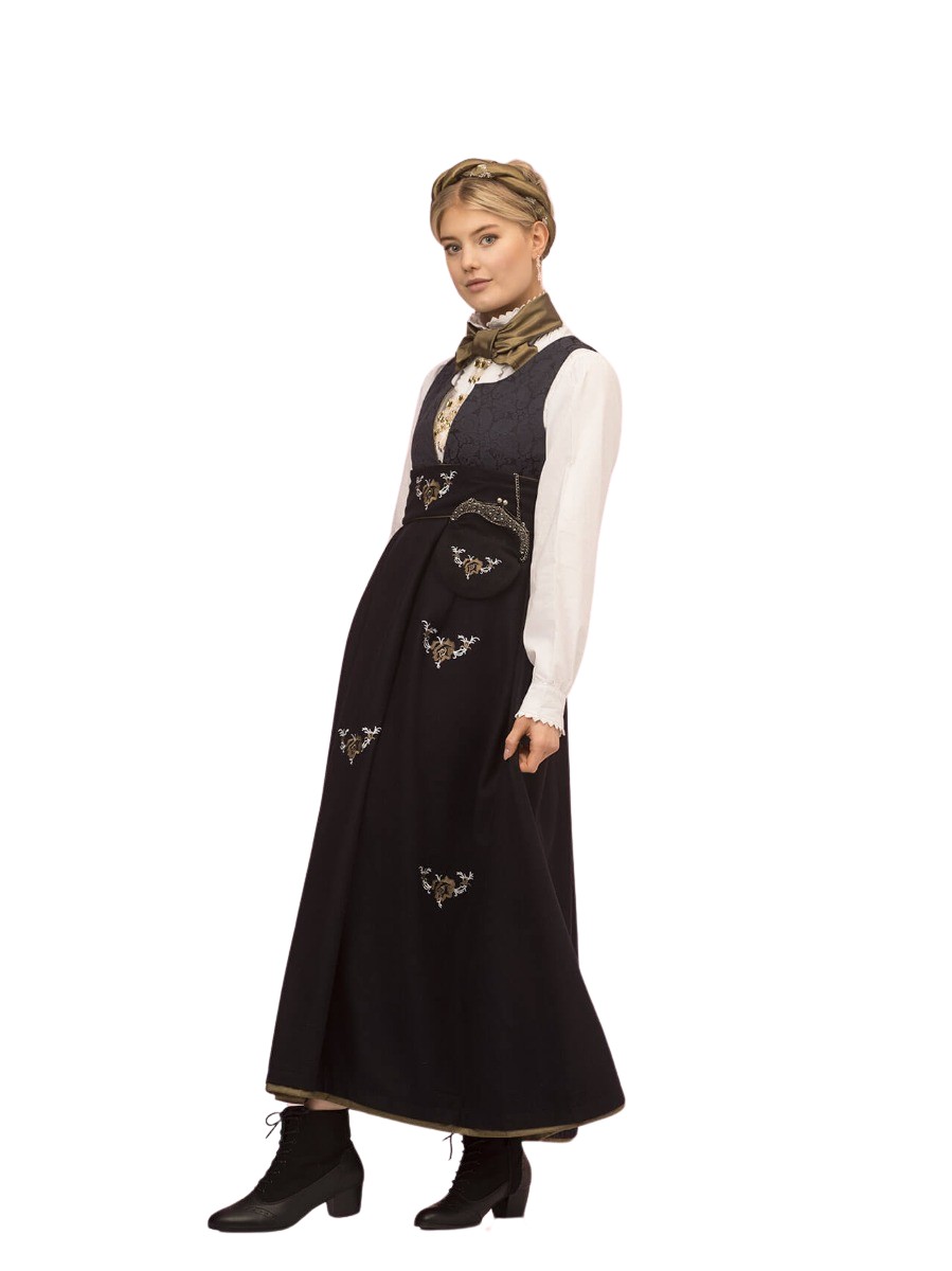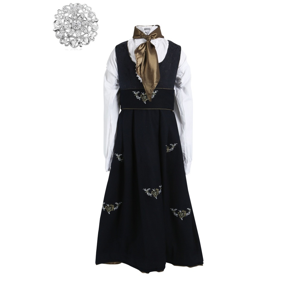 Maxemilia festdrakt, Norsk design i ull med broderier. Skjorte og skjerf er inkludert. Festdrakten leveres med et legg, som enkelt kan tas opp. Dette forlenger brukstiden til ca 3 år.