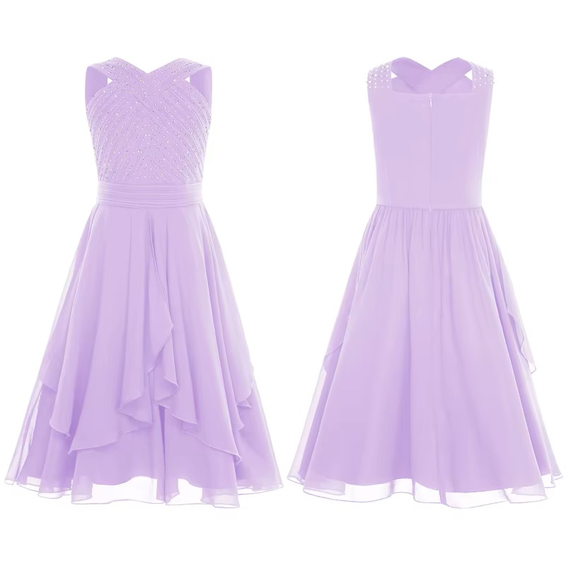 Søt kjole til jente og ungdom uten armer. Kjolen er fylt med små stener på overdelen. Skjørtet har medium lengde og er luftig og ledig. Veldig fin. Eks 12 år - 152 cm høyde