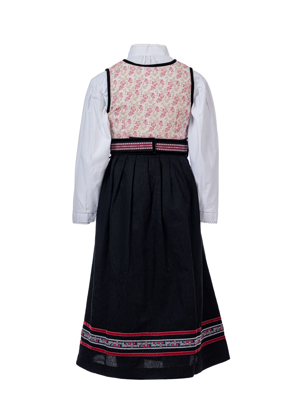 Festdrakt, skjorte, veske og sølje. Nydelig festdrakt i 80% polyester og 20% bomull med skjorte i 100% bomull. Vaskes lett på 30 grader. Nydelig brosje følger med! Normal størrelse på drakt, bortsett fra over 10 år. Da kan man runde opp en størrelse.